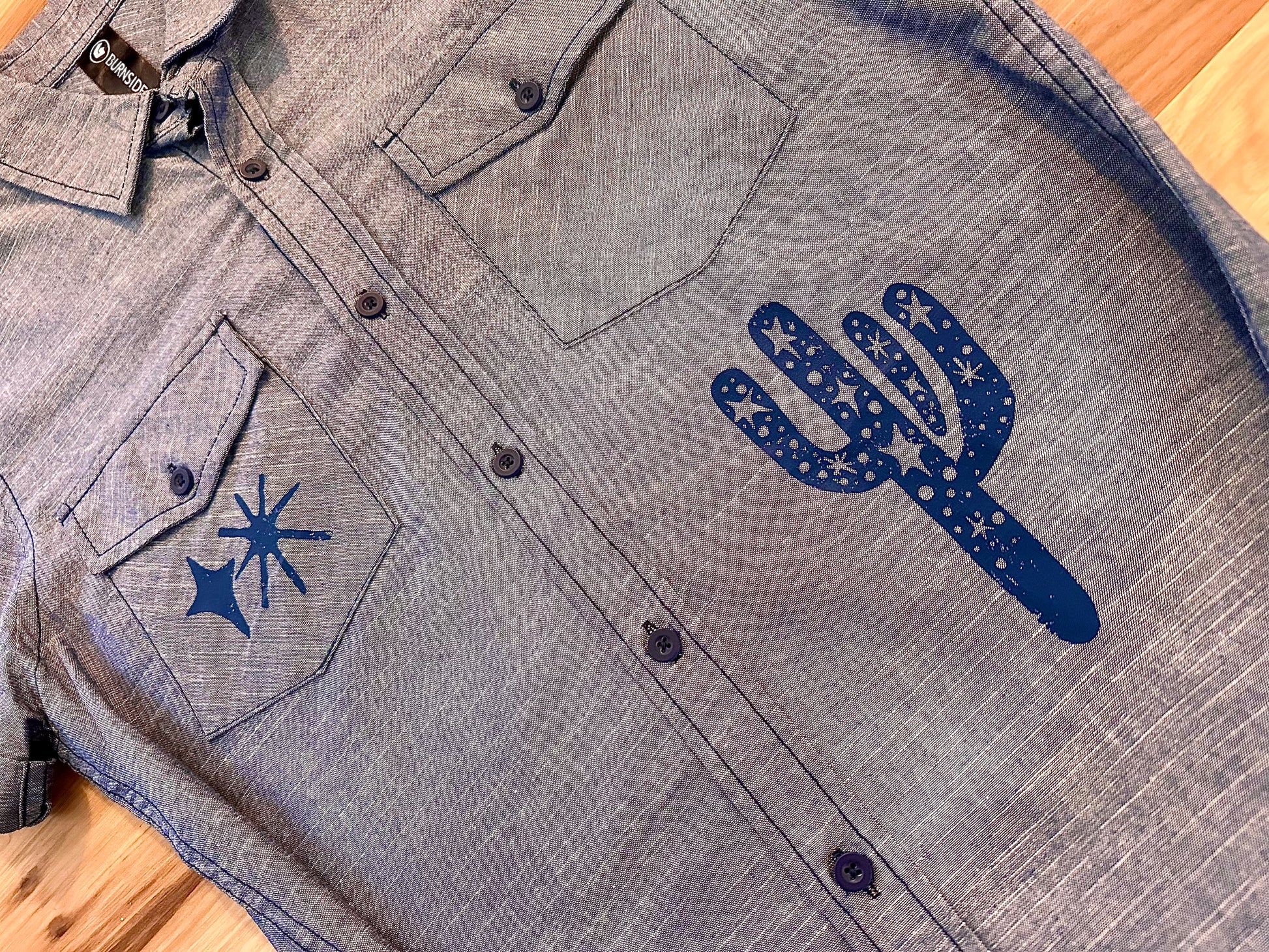 Printed on a Chambray Sierra Pacific Shirt: