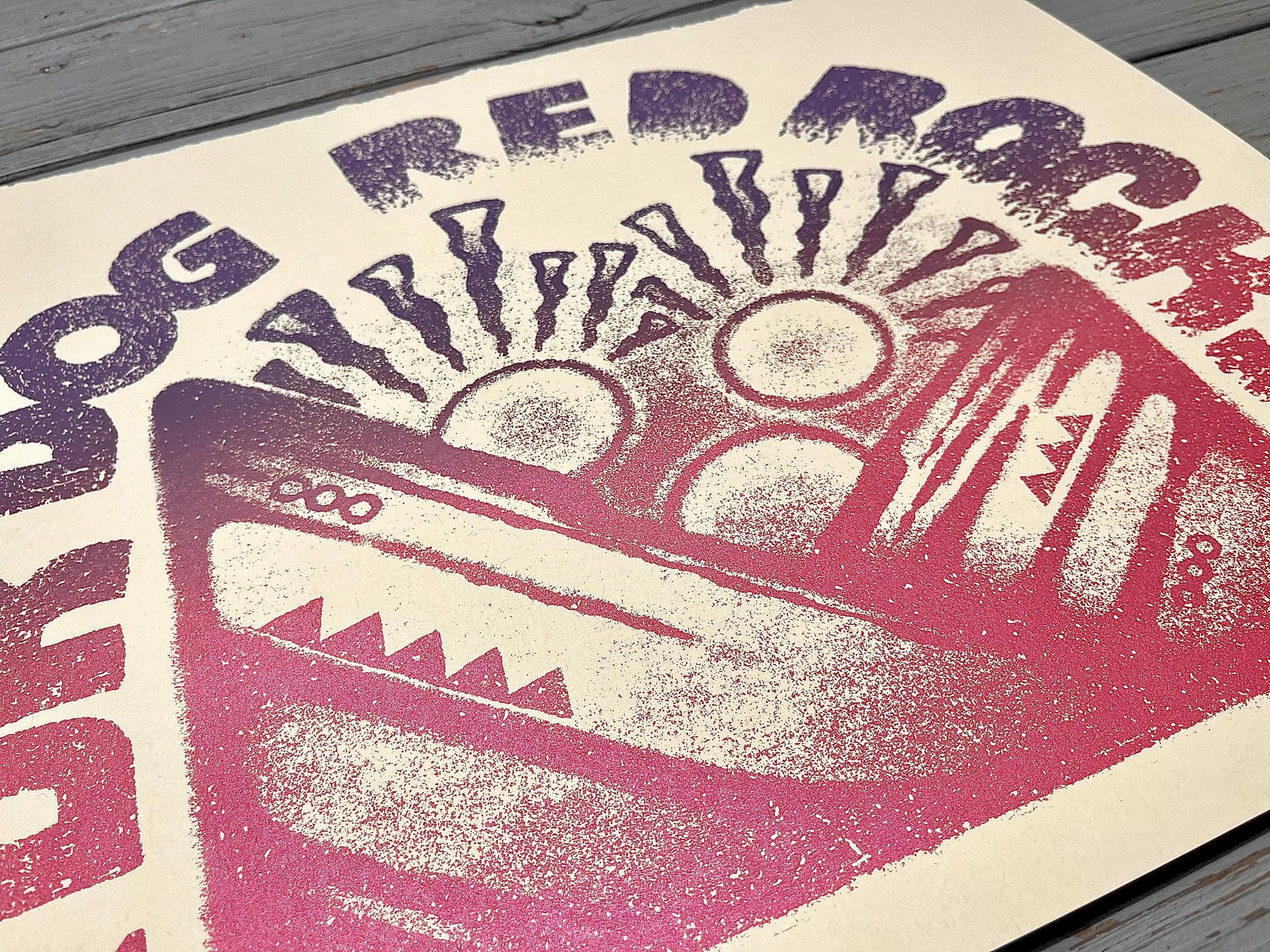A split fountain screen print on 100lb French paper. Printed in a limited, signed Artist Edition.