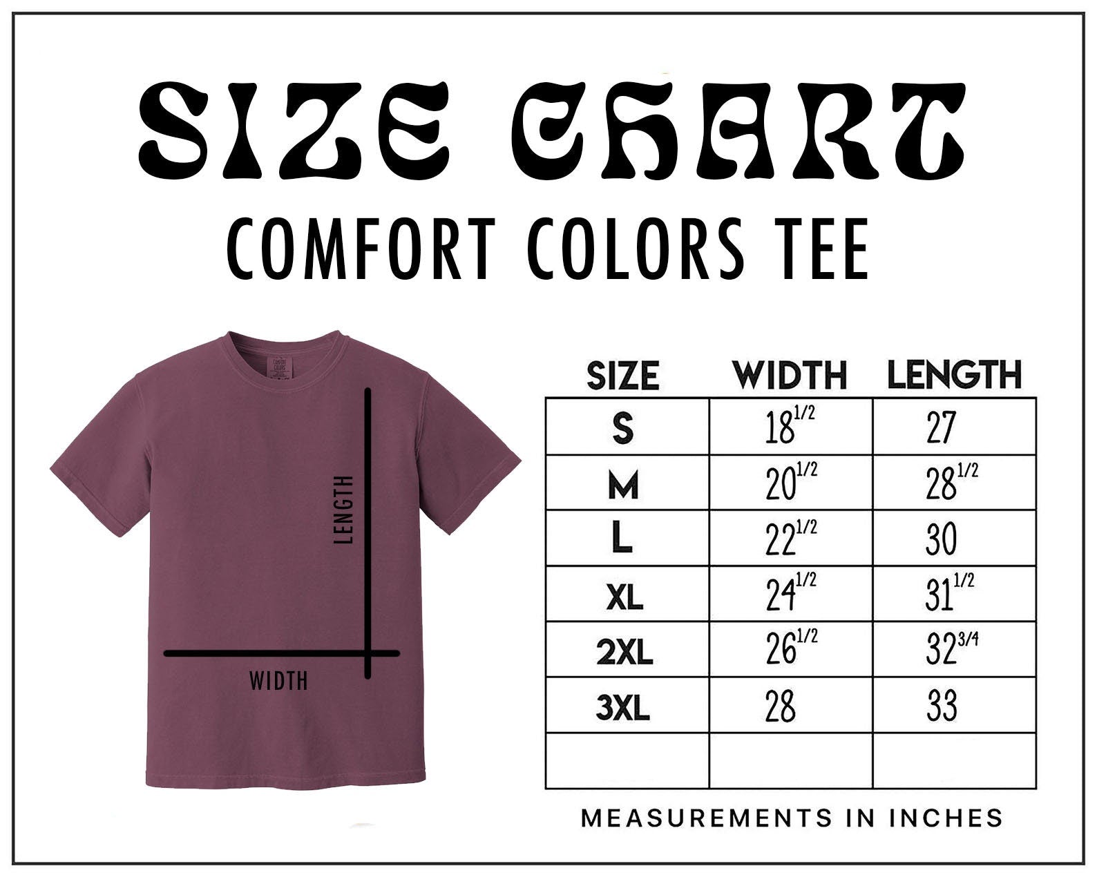 Printed on Comfort Colors, a super comfy shirt with a slightly oversized fit. Perfect for relaxing at home, gardening, hiking, or styling with jeans and heading to a show.